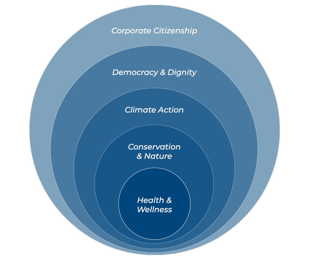 A: It starts with rigor. Working with our sustainable investing partner Reynders, McVeigh Capital Management, we evaluate companies using multiple independent data sources and measurable criteria—not marketing language. We look at credible commitments, operational performance, governance practices, and alignment with our five sustainable investing themes: Health & Wellness, Conservation & Nature, Climate Action, Democracy & Dignity, and Corporate Citizenship.
